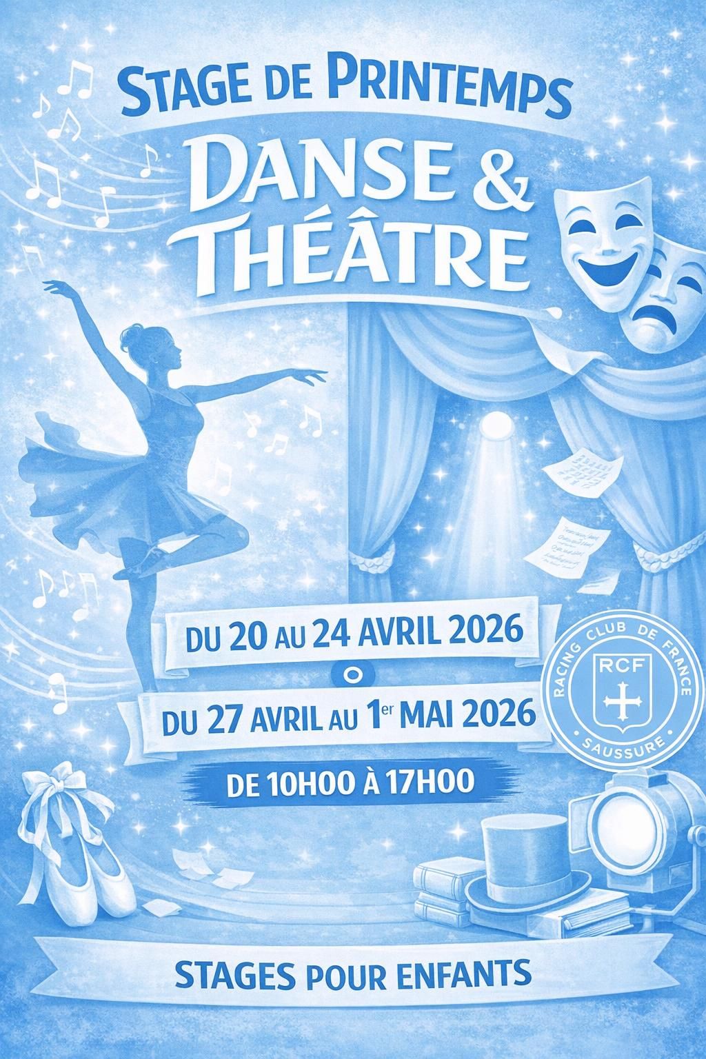 La section danse du Racing Club de France vous propose un stage danse & théâtre pour les vacances de pâques.