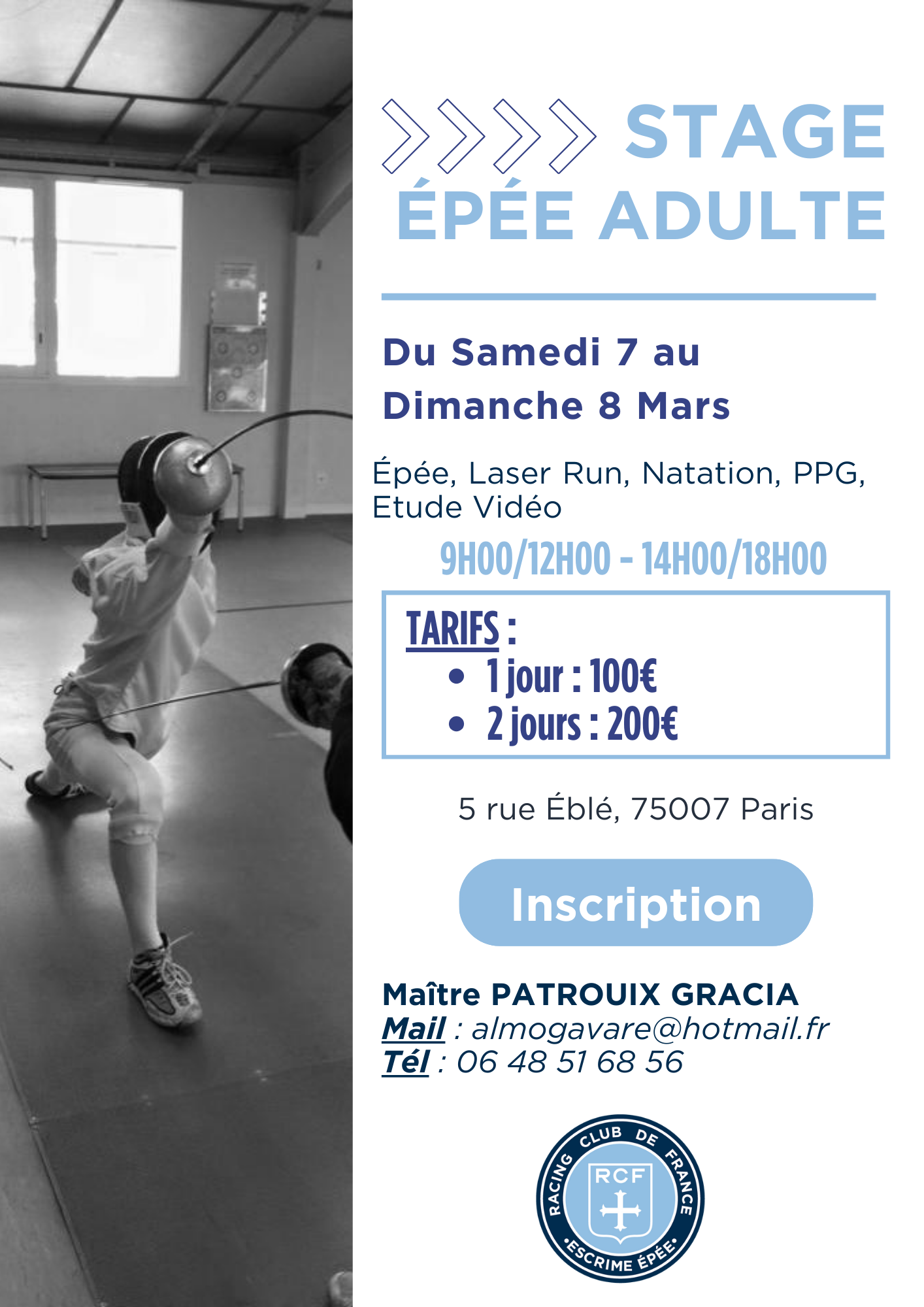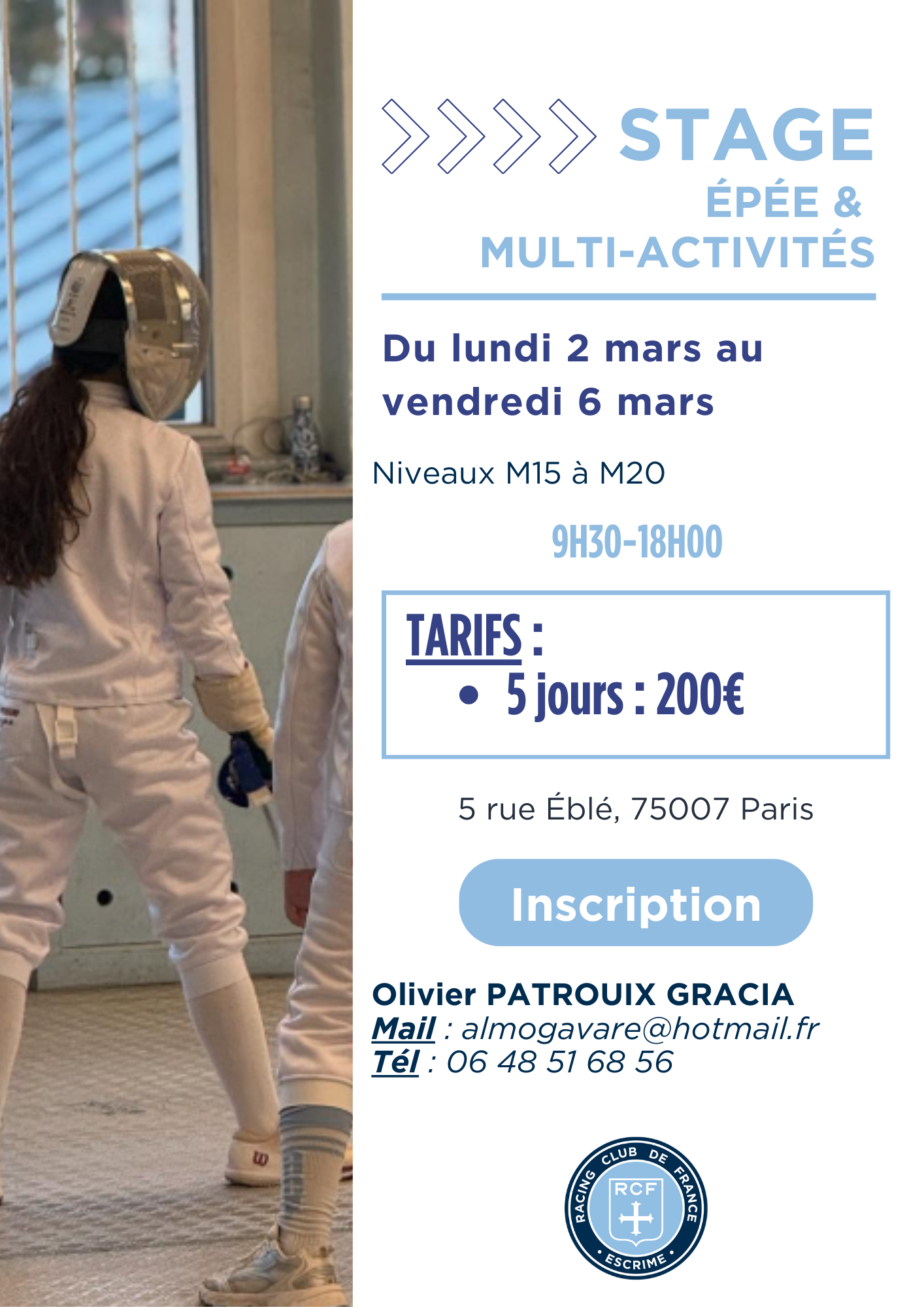 La section escrime organise un stage fleuret, épée, sabre et multi activités du 02 au 05 mars 2026. Cliquez ici pour plus d'informations.STAGE ESCRIME FLEURET, ÉPÉE, SABRE ET MULTI-ACTIVITÉS