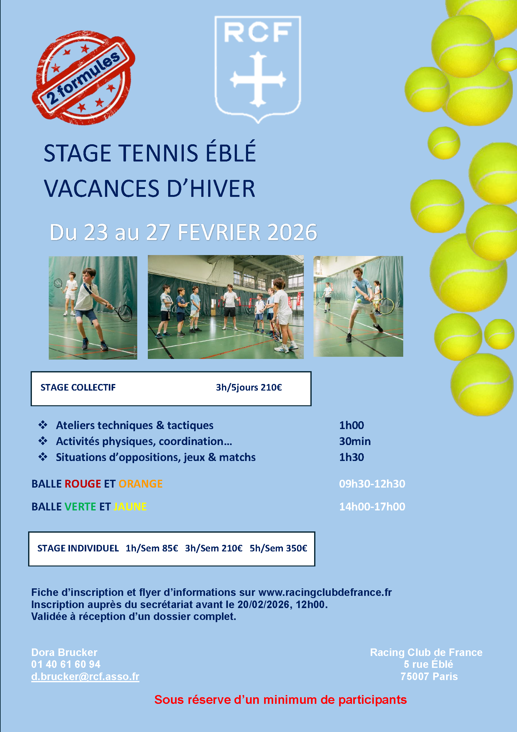 Les stages de la section tennis reviennent pour une nouvelle édition ! Inscrivez vous dès maintenant.Site Éblé :