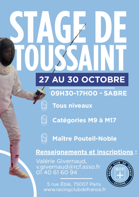 La section escrime organise des stages pendant les vacances de la Toussaint ! Inscrivez vous dès maintenant.Nos stages
