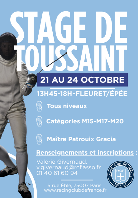 Un stage de fleuret et épée aura lieu du 21 au 24 octobre.